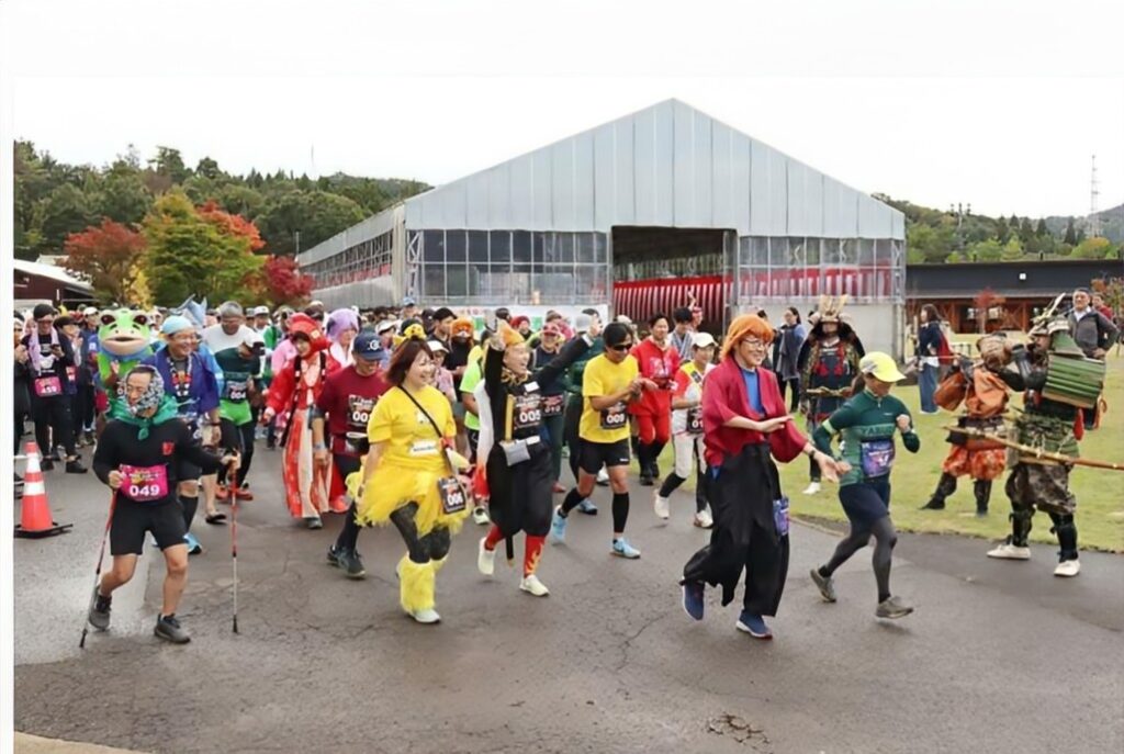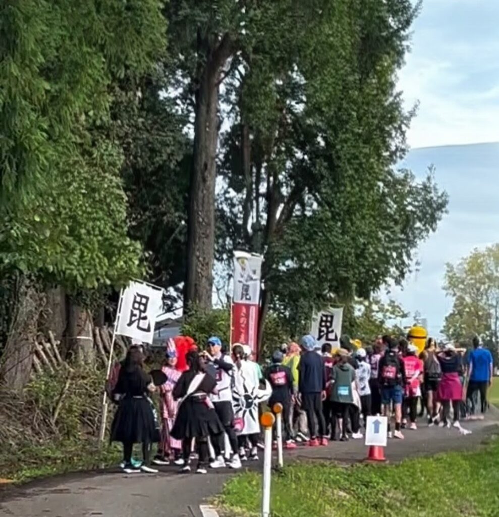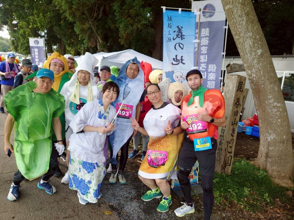 今回のスタート地点はきのこ園から約3km(約15分ほどで到着可能)しか離れていないので10時30分頃には思い思いの素敵な衣装をまとったランナーが続々と到着しました。
