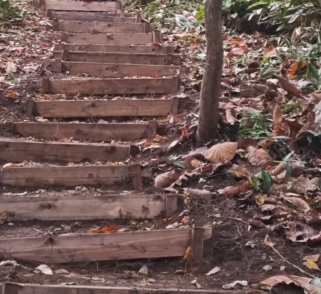 青空の下での作業とは行きませんでしたが雨に打たれることもなく立派な階段ができ上がりました。