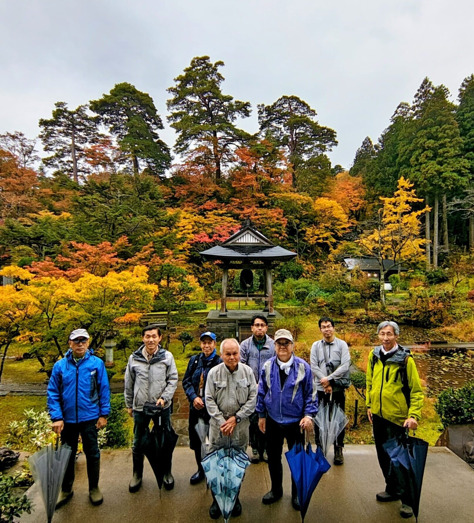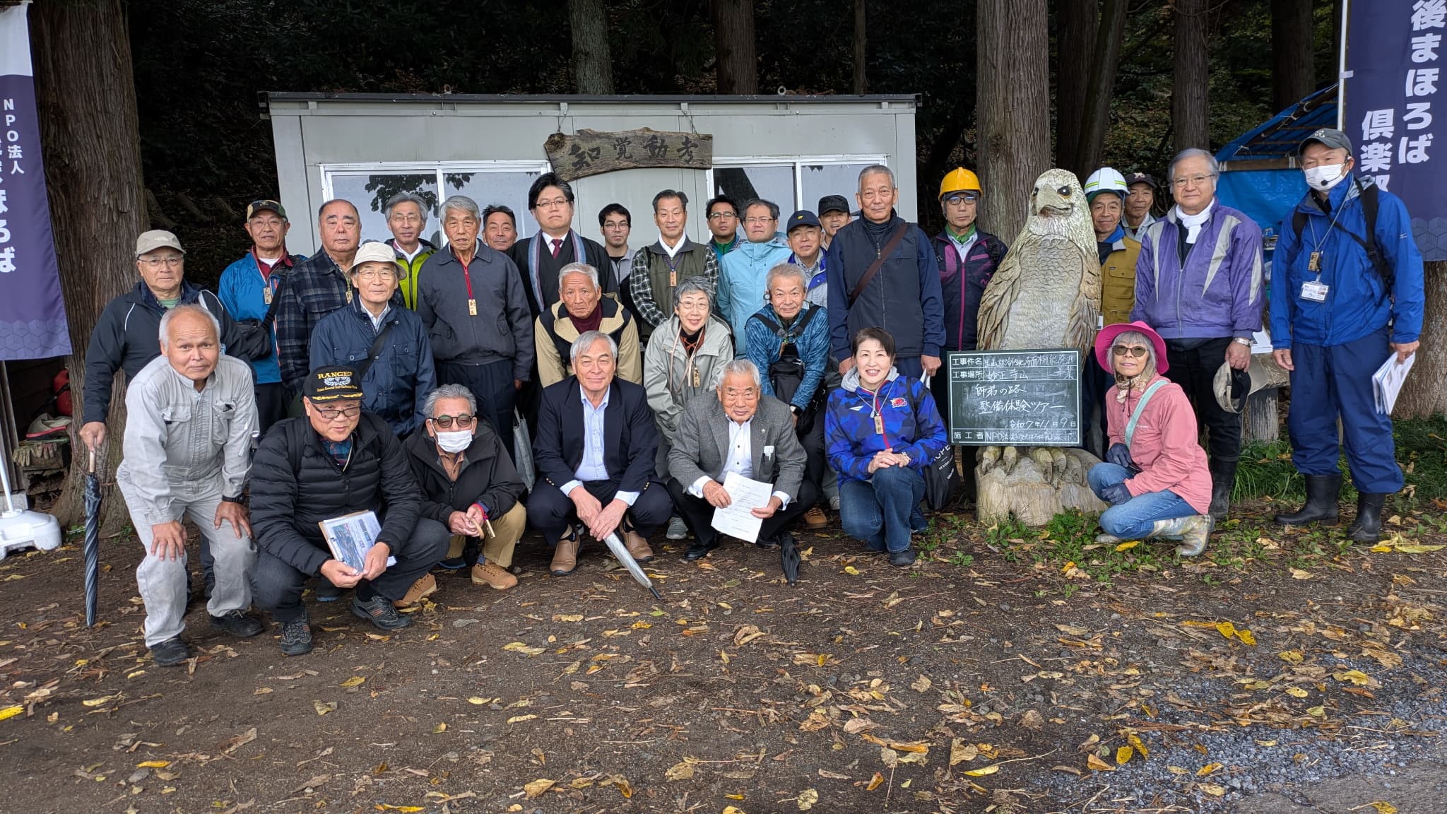 吉川区大乗寺歴史伝承保存会の皆さまが古道散策においでくださったので一緒に写真を撮った後でツアーを開始いたしました。