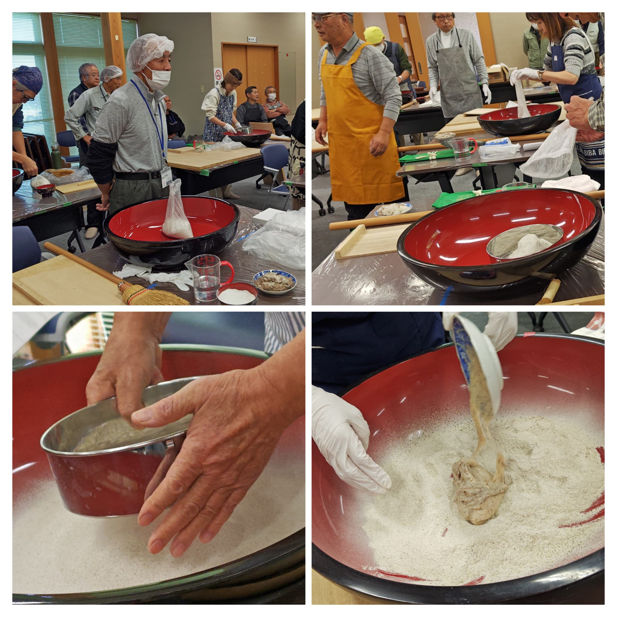 11月22日(土)の午後、大豆町内会館をお借りしてそば打ち体験会を行いました。