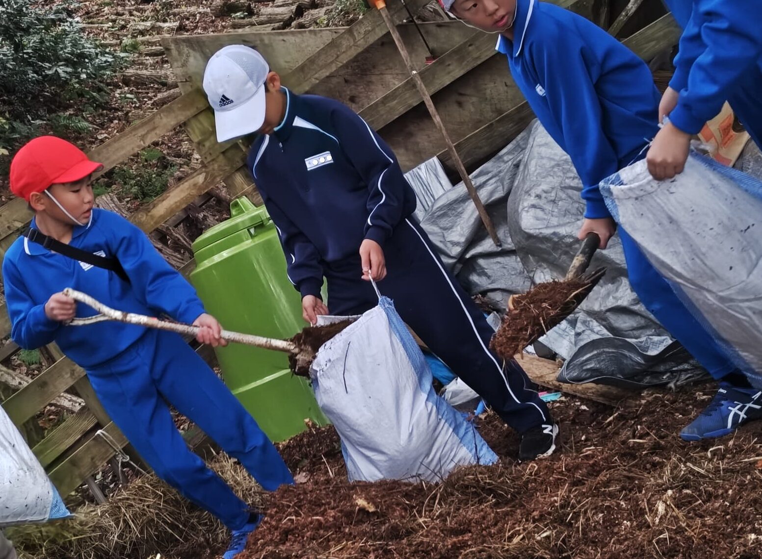 前に参加したことのある子どもも今回初めての子どももペアになって一生懸命に堆肥を袋に詰めてくれました。