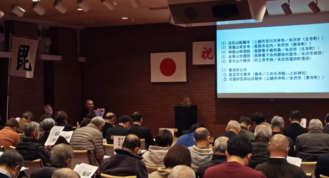 第1部の講演会では謙信公が生まれ育った春日山にある正養寺と景勝時代の移封先である米沢にある照陽寺との関係、照陽寺をはじめとする上杉家ゆかりの寺院の紹介などについて詳しくご説明いただきました。
